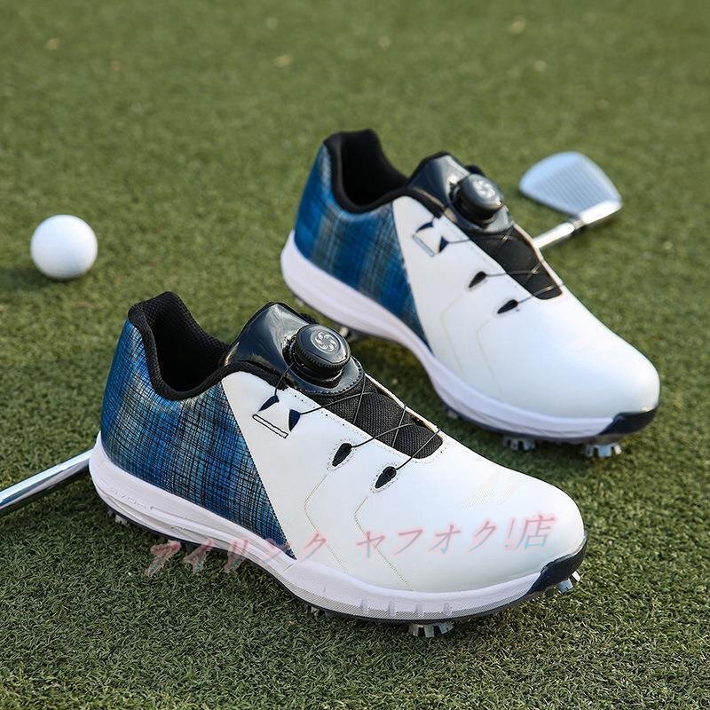 - ☆新品ゴルフシューズ メンズ スパイク 強いグリップ 4E 運動靴 スポーツシューズ 軽量 フィット感 弾力性 防水防滑耐磨 ブルー