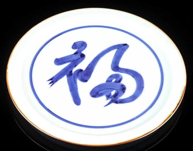 - 北大路魯山人 染付福字 飾り皿 本物返品OK 241026−1