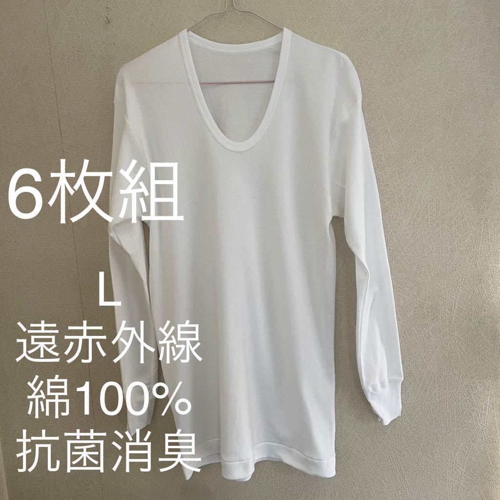 - 6枚組 L 長袖 インナー シャツ 白 メンズ U首 アンダーシャツ 秋冬 厚地 男性 紳士
