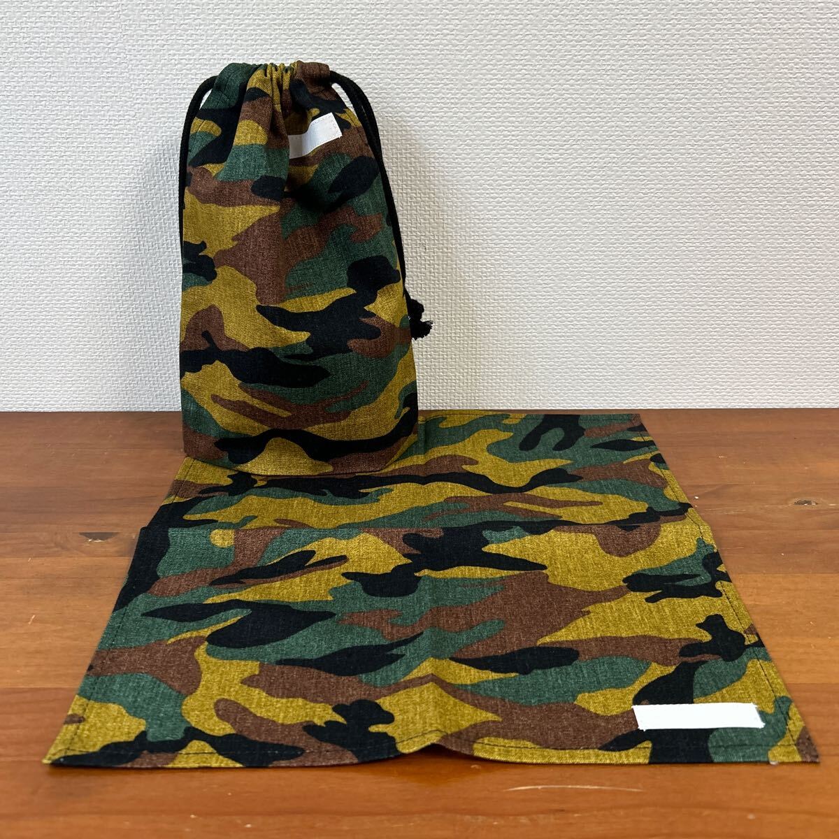 - ハンドメイド 30×30cmサイズのフキン&給食袋セット NO.17 巾着袋 給食袋 入学準備 男の子給食袋 入園入学準備 迷彩