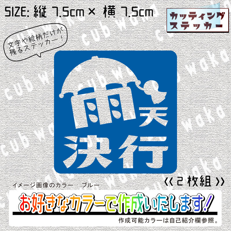 - 雨天決行②ステッカー2枚組 文字絵柄だけ残るカッティングステッカー・カブ・車・バイク・二輪・トラック・リアガラス・リアボックス