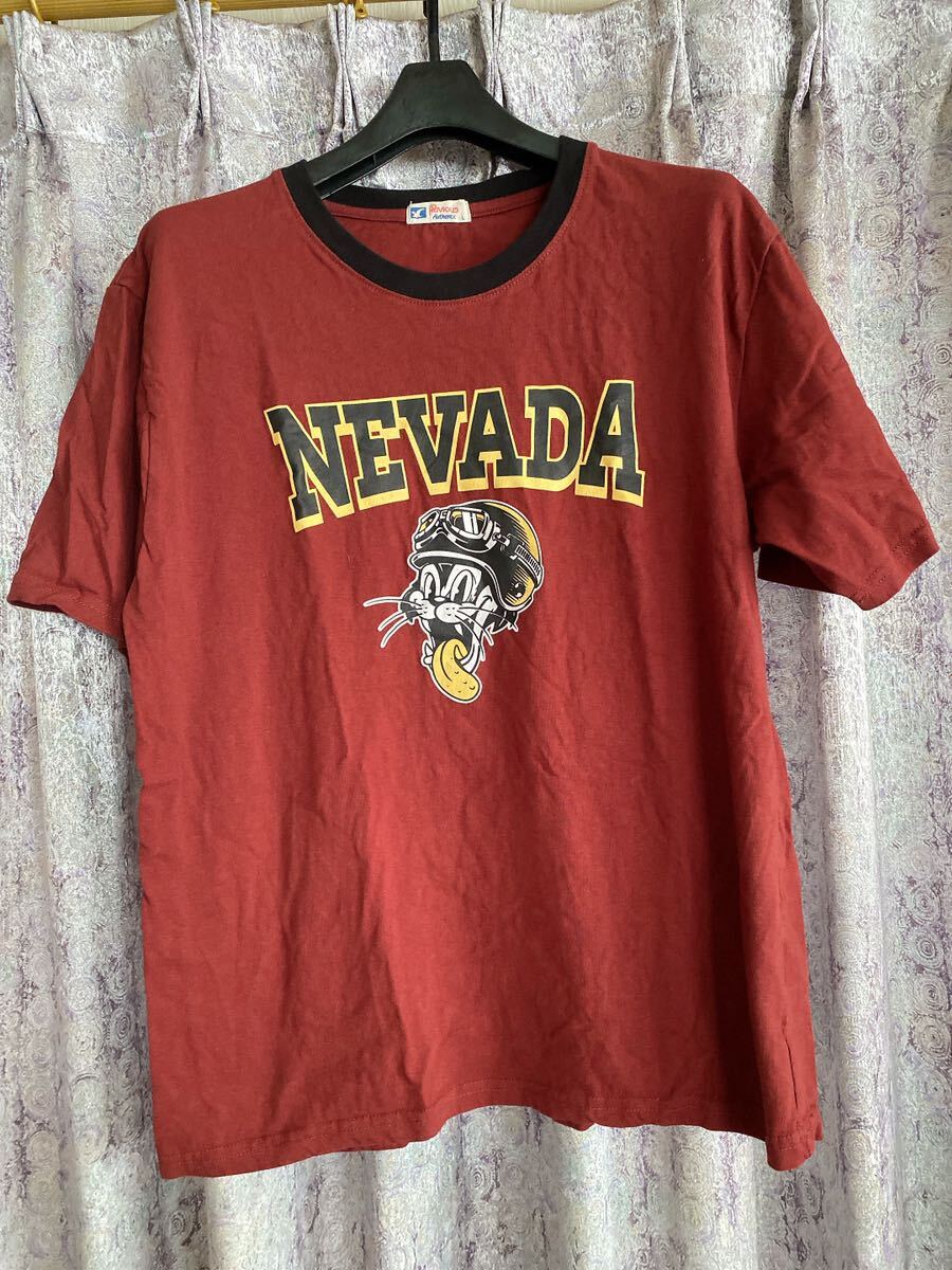 - pluvious 半袖プリントTシャツ 半袖 Tシャツ 古着 えんじ ヴィンテージ ライダー ねこ 猫 バイク メンズL NEVADA cat にゃんこ