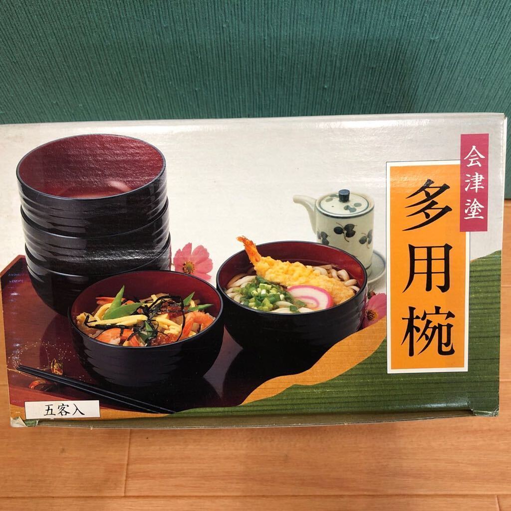 - 会津塗 多用椀 5客 和食器 ロクロ目