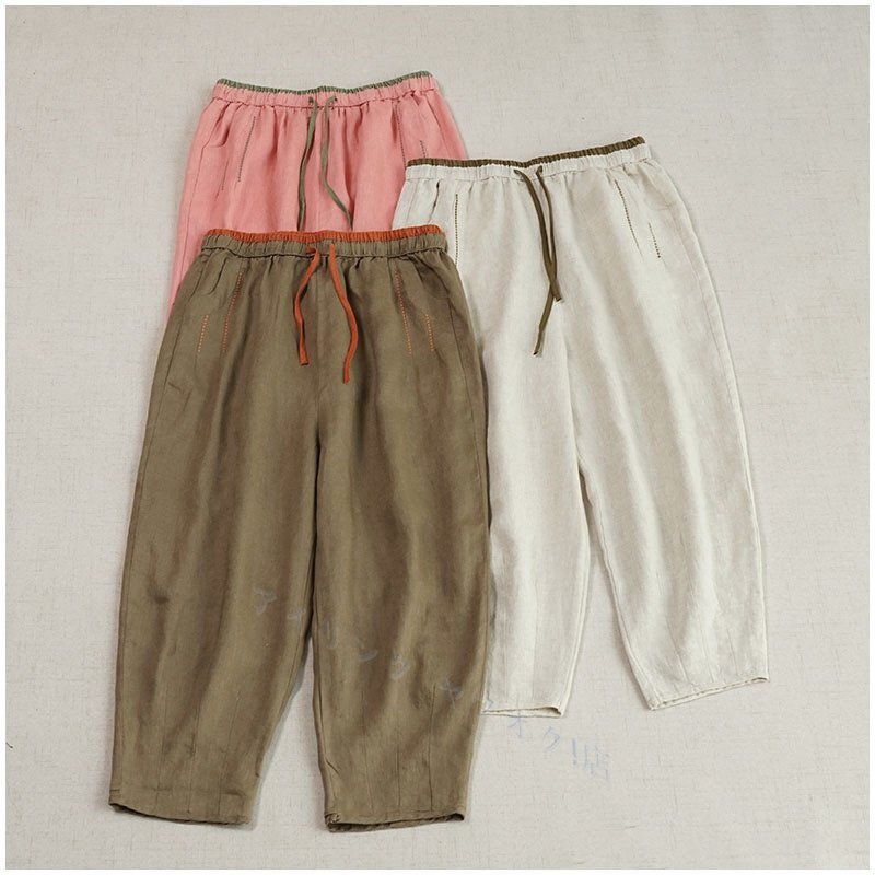 - 新品☆麻リネン キャラメル系 ボトムズ 楽ちん ナチュラル系 ゆったりF