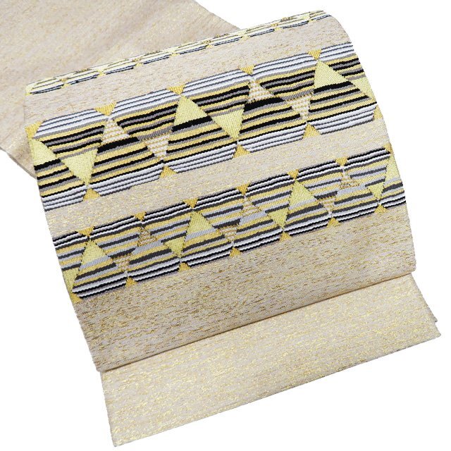 > 袋帯 未使用 正絹 フォーマル 仕立て上がり お太鼓柄 組織 組帯 箔糸 金通し 蒸栗色 多色 金 きもの北條 A1103-12
