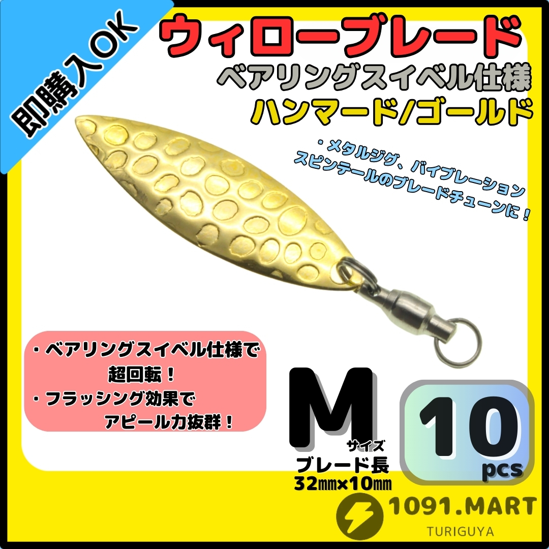 - 【送料150円】ウィローブレード ハンマード/ゴールドMサイズ10個セットボールベアリングスイベル付きスピンテールブレードブレードチューン