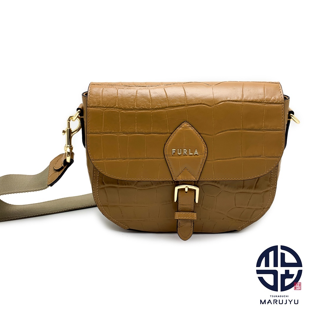 - FURLA フルラ 茶系 ブラウン キャメル クロコ調 ショルダーバッグ ウラニア Mサイズ バック 鞄 カバン ブランド