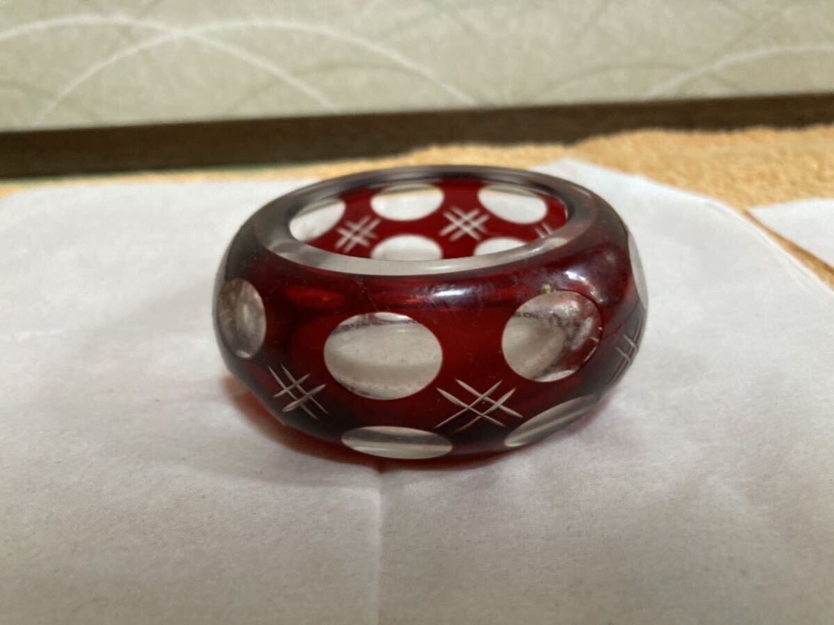 - アンティーク ?骨董品?ガラス製?切子グラス?皿?切子皿?皿?汚れありです。