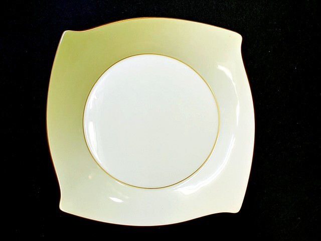 > 3QV売切!税無し☆ナルミ★スクエアデザート皿★フォルテ★ゴールドライン★約24.5cm★グリーン★洋食器★現状★現品限り★1025-4
