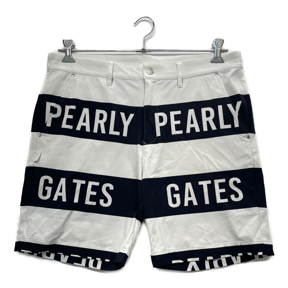 - coco 中古【SALE】パーリーゲイツ PEARLY GATES メンズ ハーフパンツ 6(XL) 白×紺 ボーダー×ロゴ柄 レターパックプラス発送可 92401
