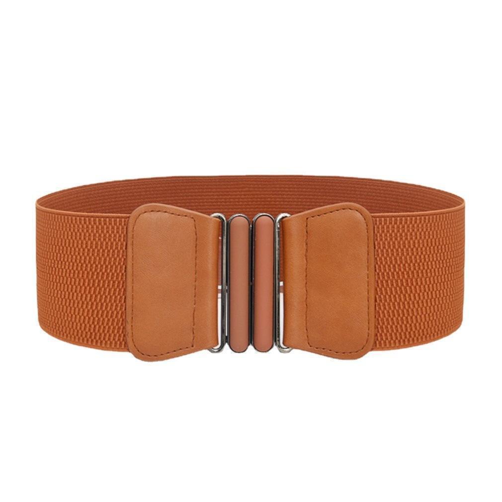 - 【キャメル ブラウン】ワイド サッシュ ストレッチ ベルト 幅広ゴムベルト