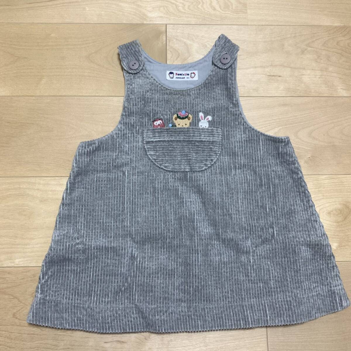 - 匿名配送 familiar 綿コーデュロイ ジャンバースカート グレー ファミリア ノースリーブジャンパースカート こども服 子供服 子ども服 秋冬