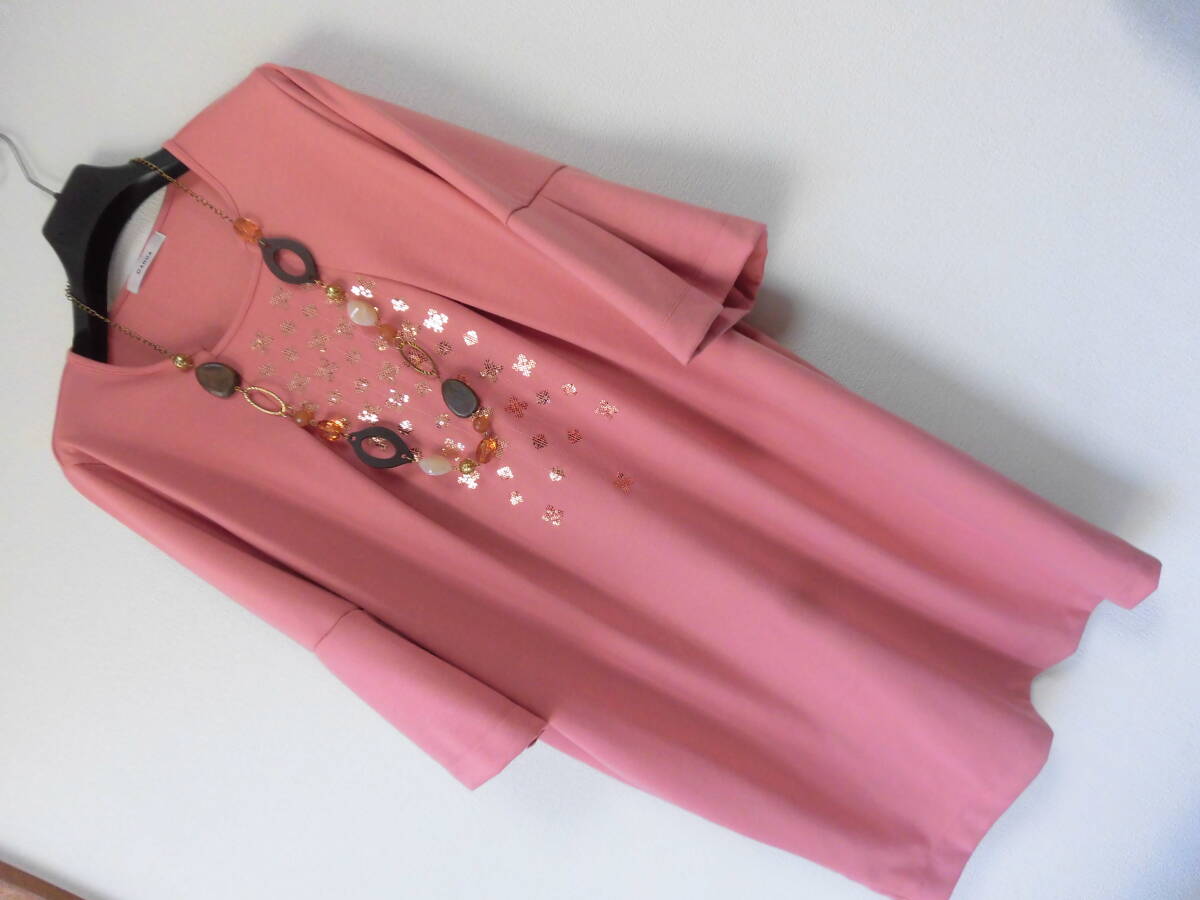 - ●新品CANOA /モーブピンク スパンコール飾/お洒落なふんわりワンピース/サイズL 大きめ