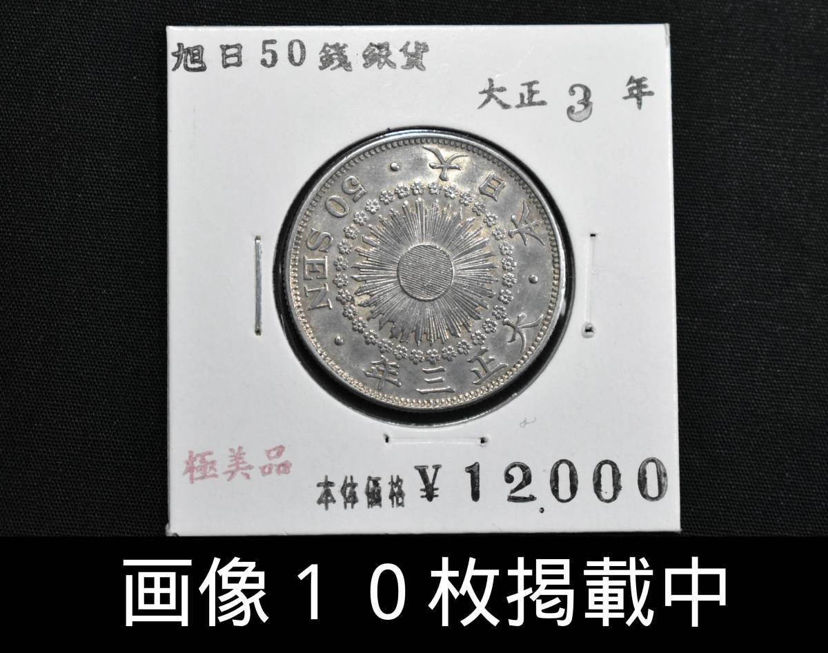 - 大正3年 旭日50銭銀貨 極美品 直径27.3mm 重さ10.1g 希少 古銭 画像10枚掲載中