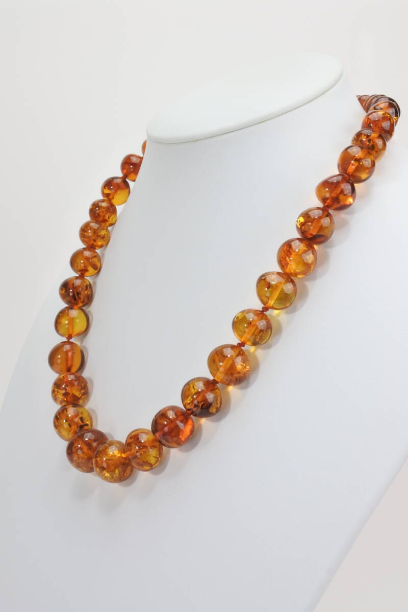- 日本製* お洒落 天然琥珀ネックレス最大珠 大きさ径17mm 長さ17mm 52g 53㎝ 逸品
