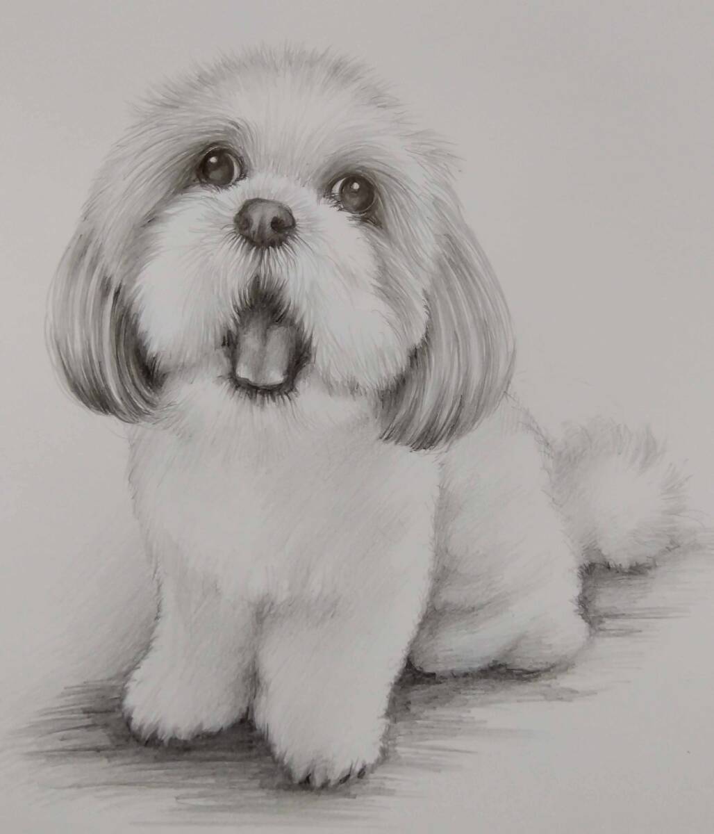 - 絵画・鉛筆画 愛犬の絵 真作「シーズー ASX-30」Atelier809 作 A4サイズ ※額縁無し。