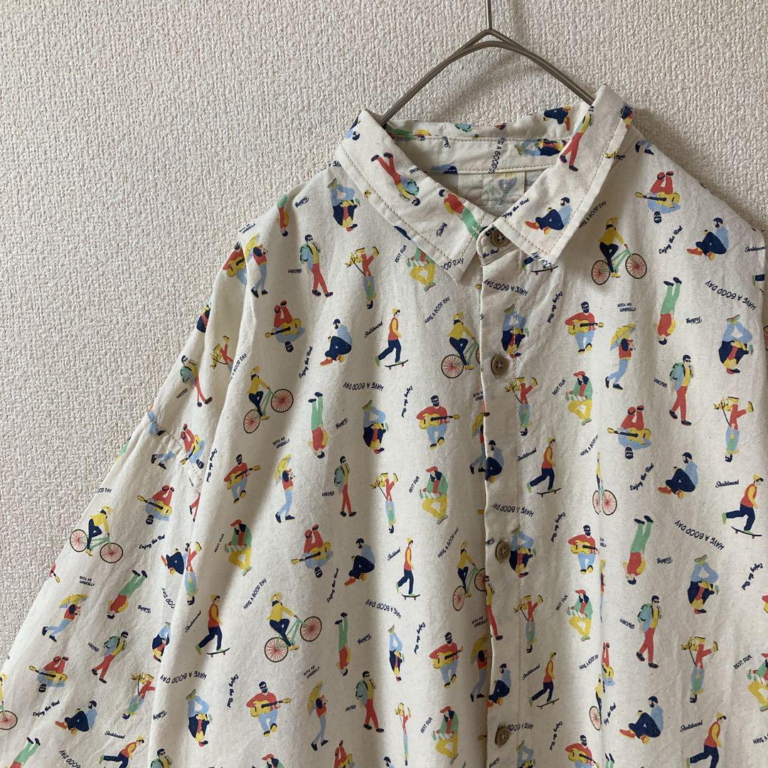 - L3 キャラクターパターン柄シャツ 大きめ ゆったり サイドポケット Lメンズ