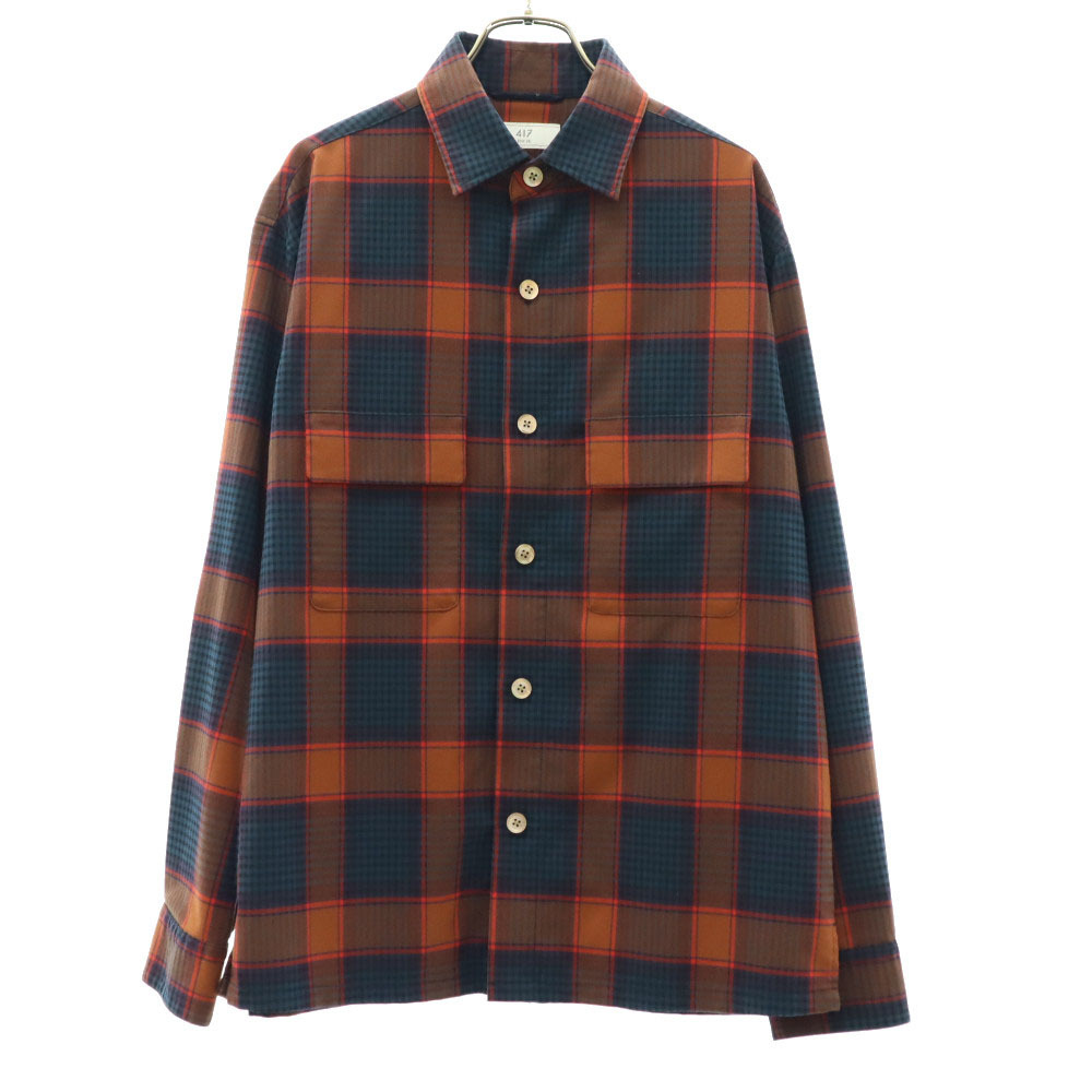 エディフィス チェック 長袖 シャツ M ブルーxオレンジ EDIFICE メンズ