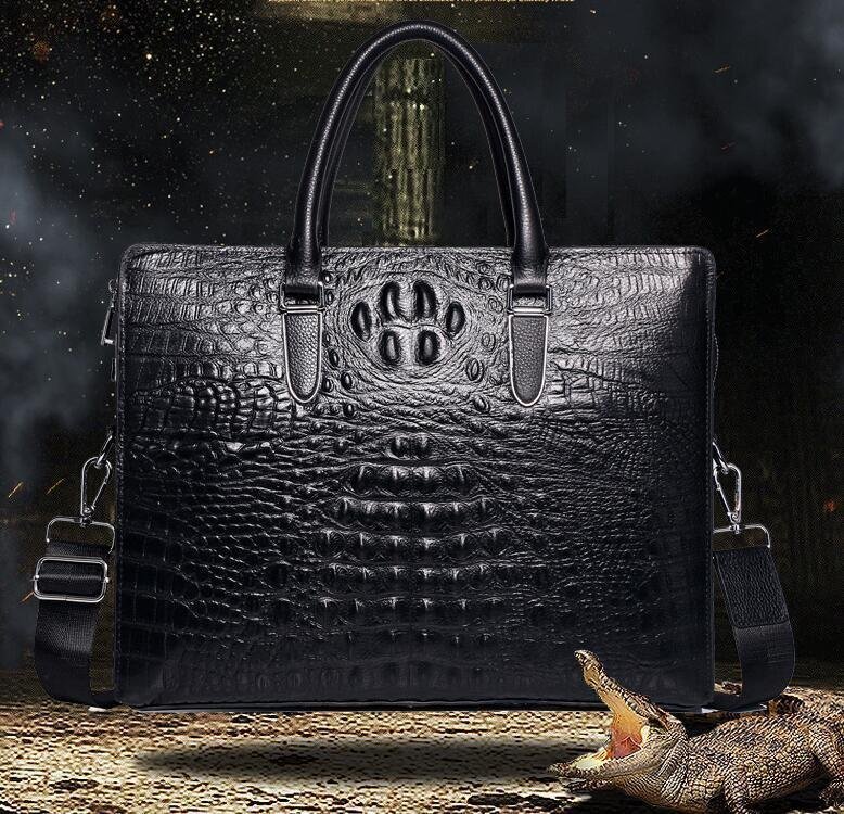 - 牛革 本革 クロコダイル型押し メンズバッグ ビジネスバッグ ノートパソコン ブリーフケース A4 レザー 通勤鞄 手提げバッグ