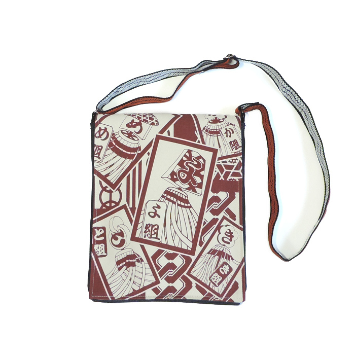 - デニムショルダーバッグ 江戸纏 赤茶 倉敷デニム 火消し柄 未使用新品