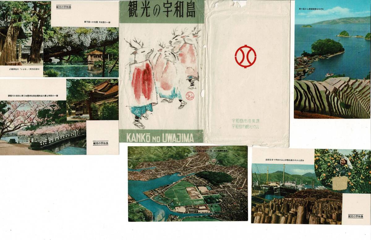 - 観光の宇和島 レトロ絵葉書5枚とタトウ 宇和島市産業課 宇和島市観光協会 天赦園・八幡神社/堂崎観音/和靈神社/市街空撮など RPM01124SM6