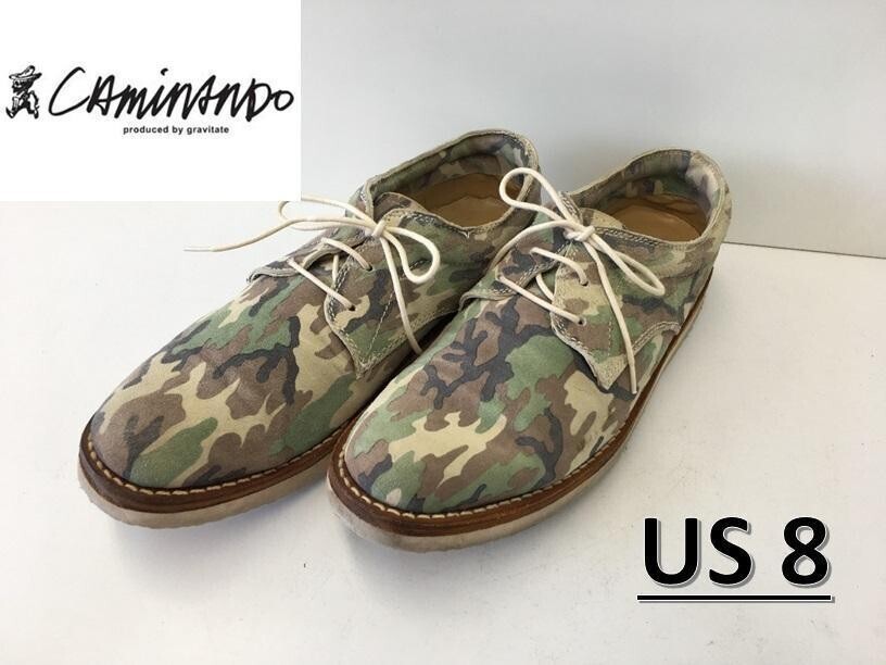 - KZ535★CAMINANDO 迷彩柄 スエードレザーシューズ★US8★カーキ カミナンド