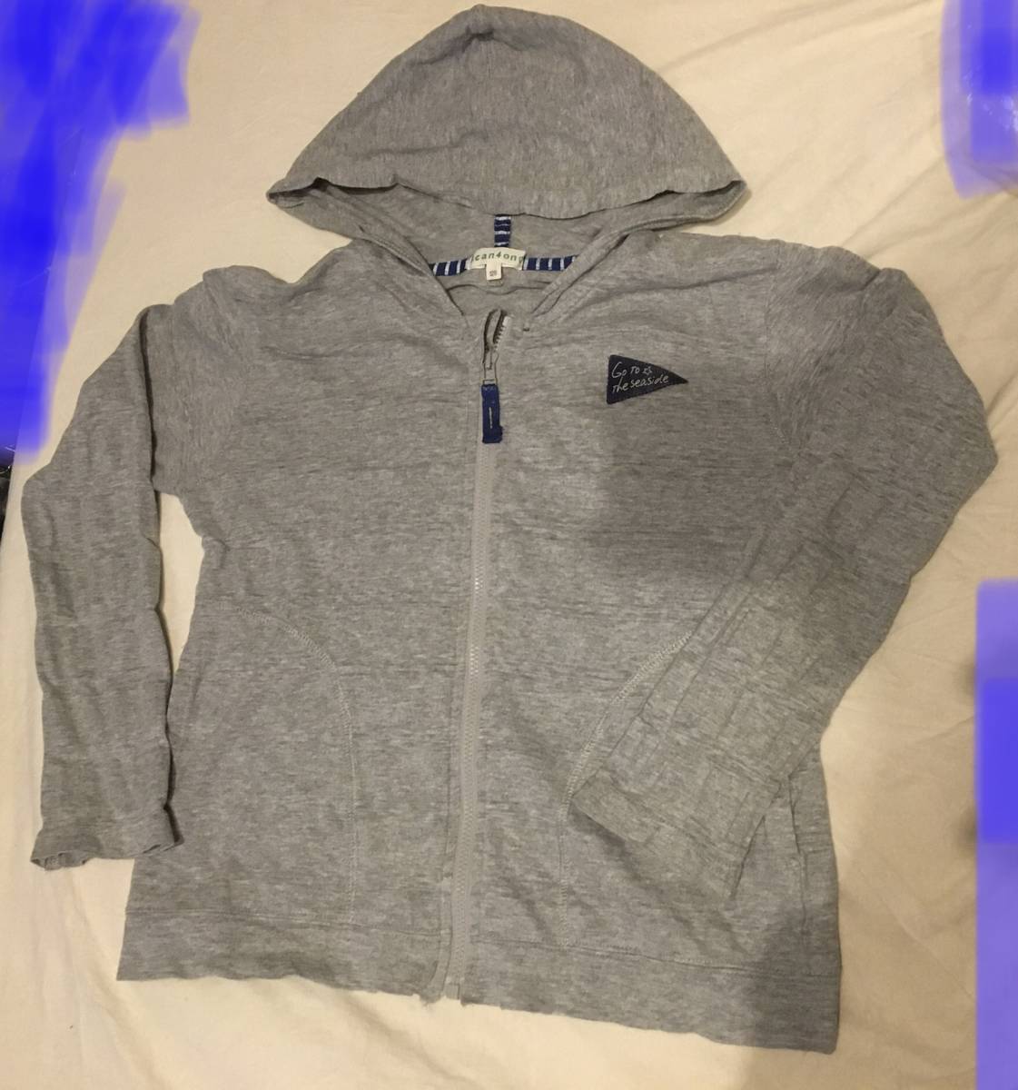 > 中古 3can4on 天竺ボーダージップパーカー ライトグレー(011) 12(120cm)