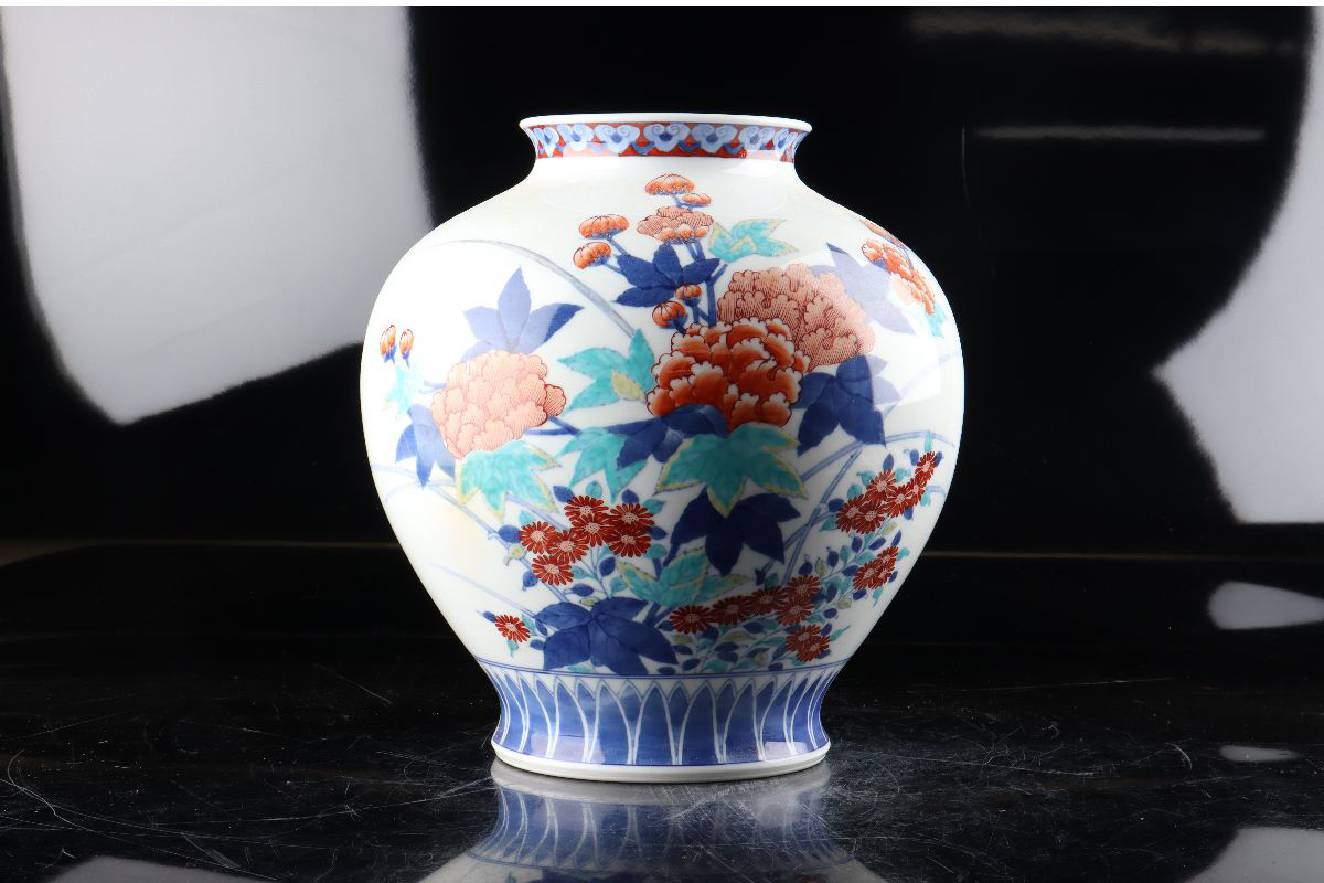 > [ギャラ藤]有田焼/弥右衛門 造/色絵花草図花瓶/共箱/G-227(検)骨董/唐物/古玩/銅器/花器/花入/花生/銅花瓶/一輪挿鉄瓶/古銅/囲炉裏