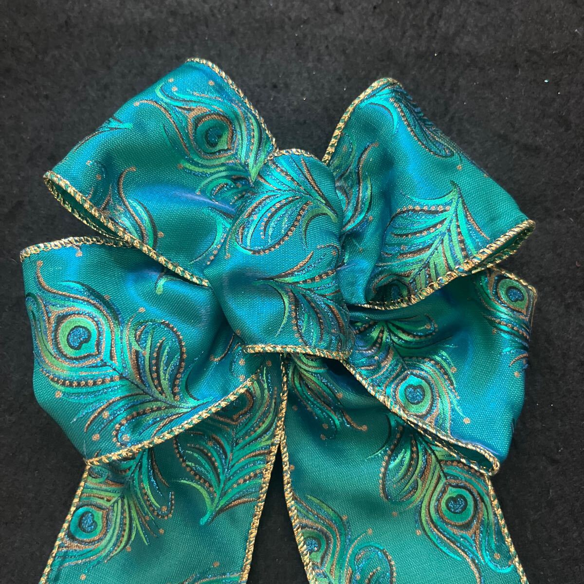 - クリスマスリース用リボン ハンドメイドリボン 5ループ 孔雀の羽リボン