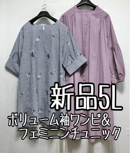 - 新品☆5L♪くすみカラーワンピ&ストライプ×刺しゅうチュニックワンピ☆x178