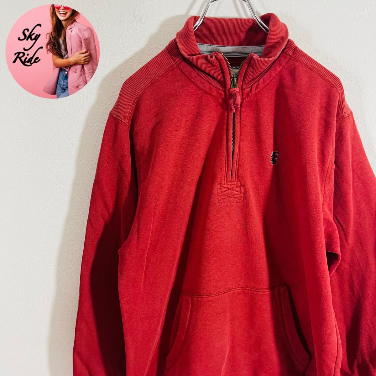 - IZOD アイゾッド メンズ ヴィンテージ 刺繍ロゴ ハーフジップ スウェット トレーナー レッド L 古着 #TB1001