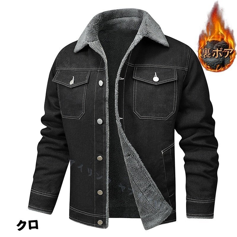 - ☆新品 デニムジャケット ブルゾン アウター ショートコート ジージャン 裏ボア 裏起毛 裏フリース メンズ クロ 4XL