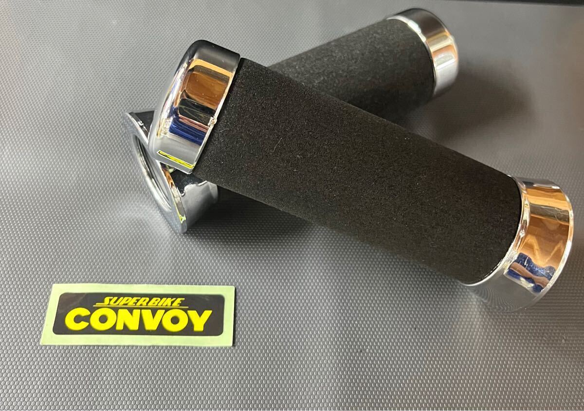 - 【4953】汎用 バイク用 グリップセット 外側はメッキ グリップ部分はスポンジ 中古社外品 バイクパーツ