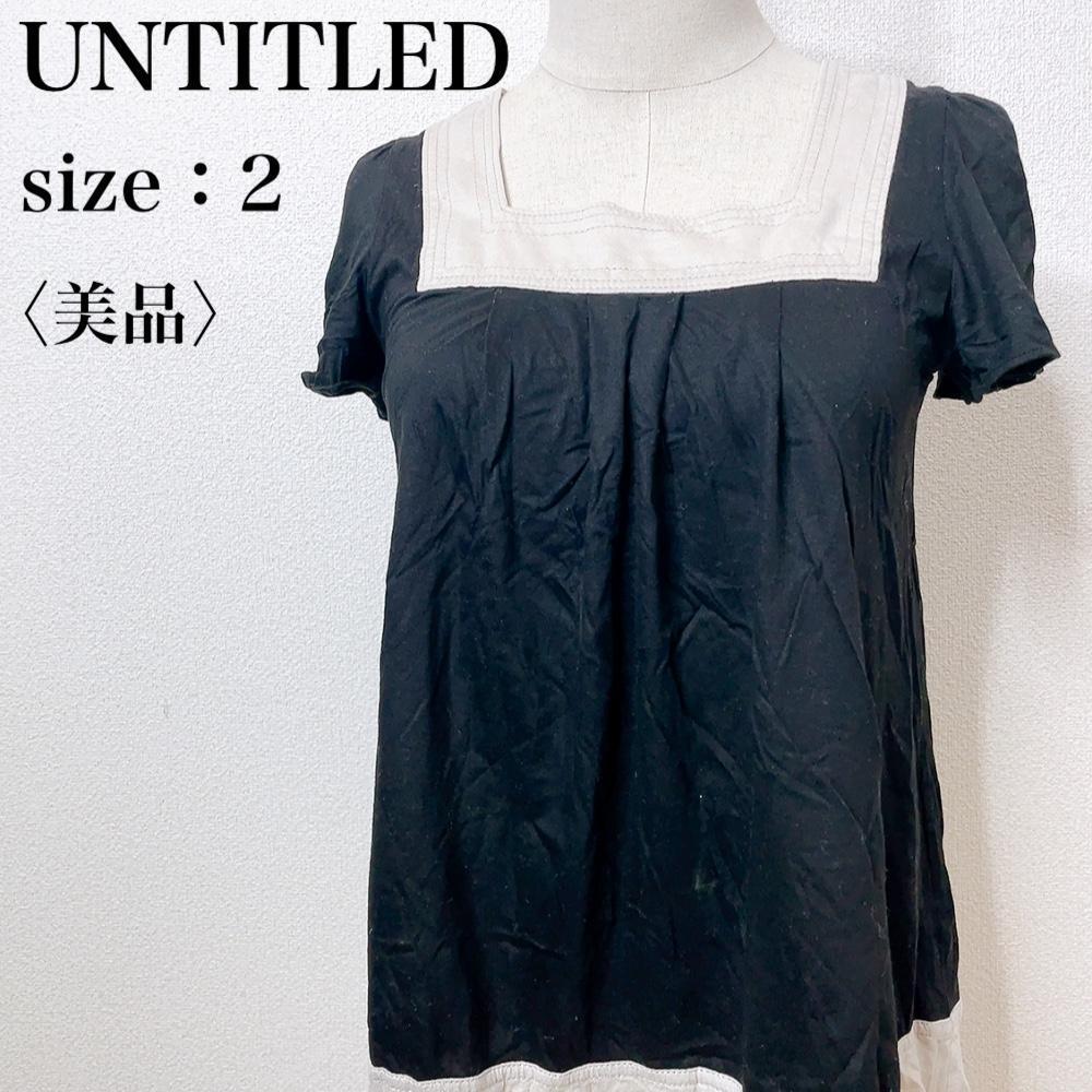 - 【美品】UNTITLED アンタイトル カジュアル Aライン バイカラー スクエアネックブラウス フェミニン エレガント 上品 ブラック よ01