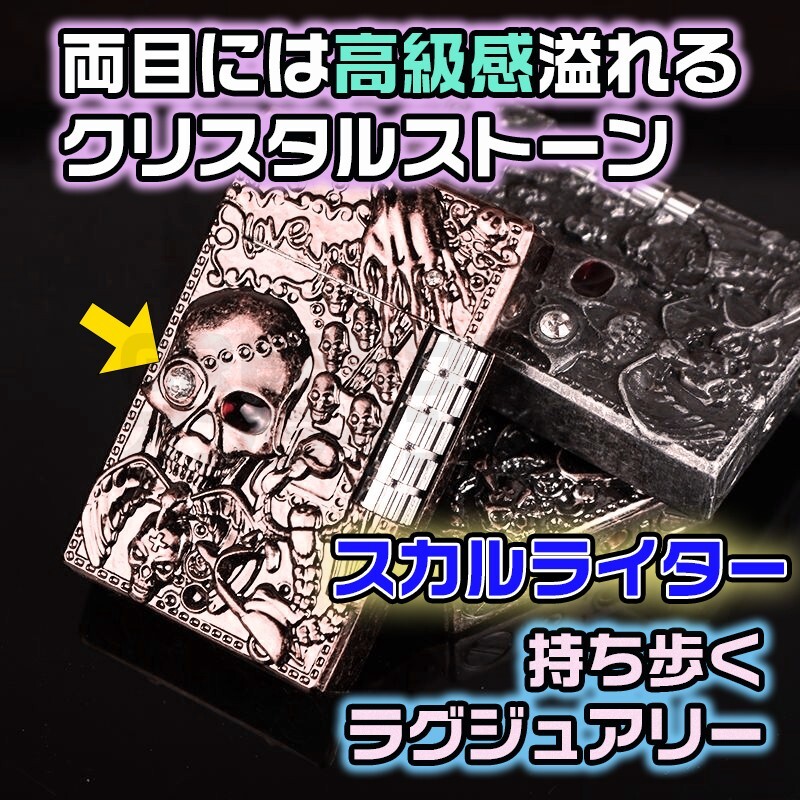 - ビンテージ スカル フリント ガスライター クリスタル ローラー ブロンズ