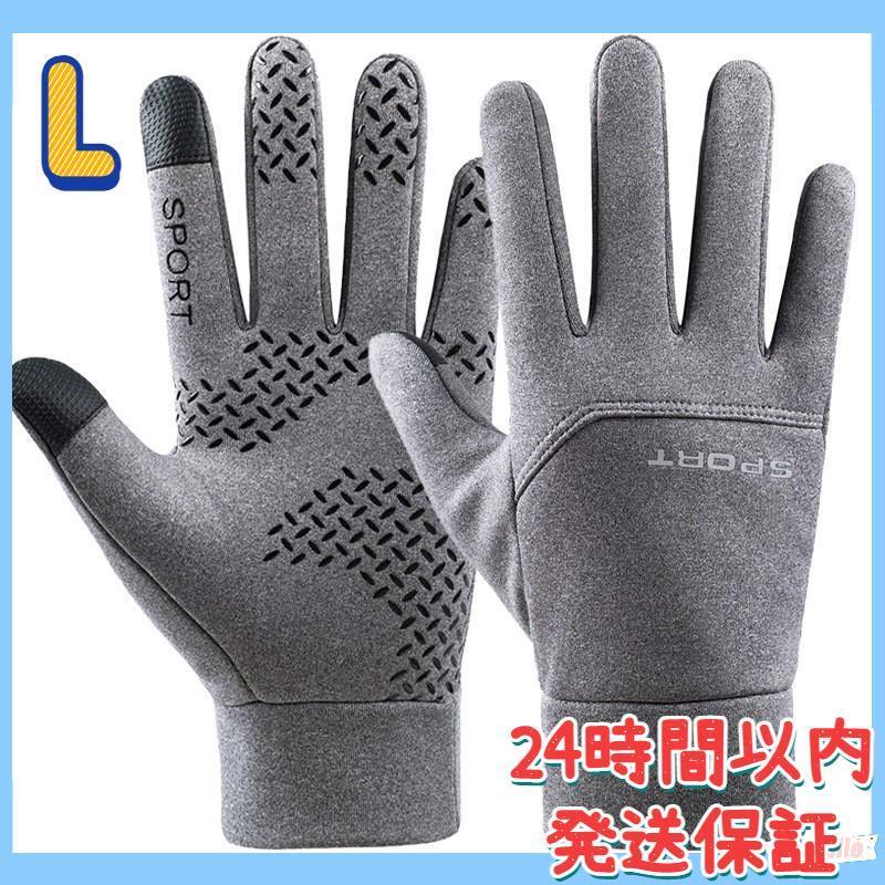 - タッチパネル対応 サイクリング手袋 グローブ 裏起毛 男女兼用 グレー L
