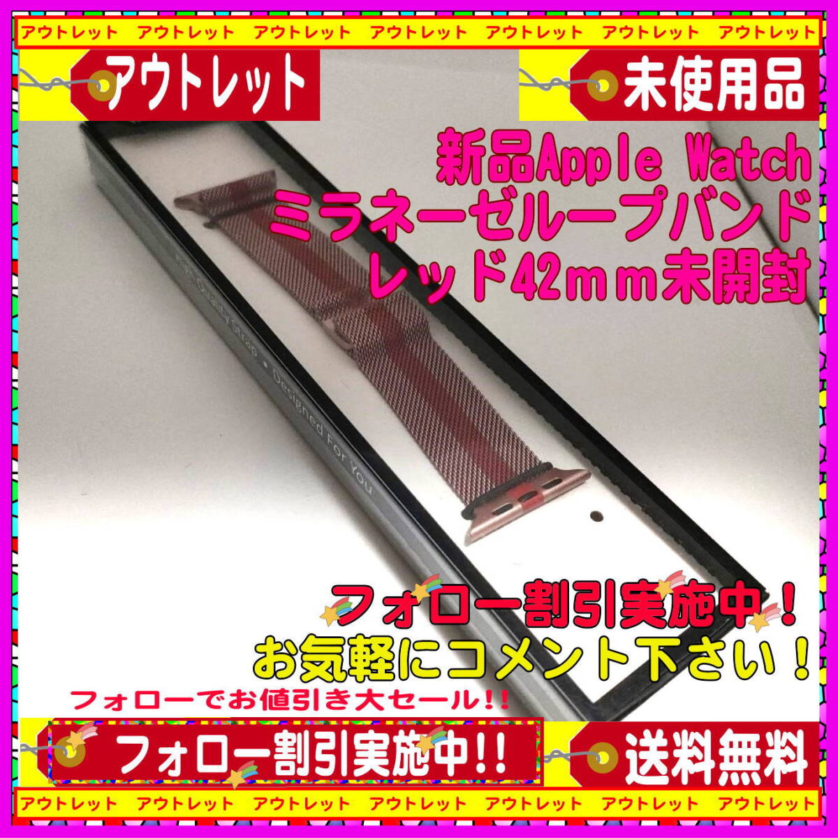 - 新品Apple Watchミラネーゼループバンド レッド42mm未開封 送料無料 匿名配送