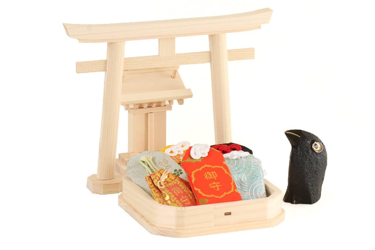 - 神棚セット モダン 一番小さなお宮さん 神様の使い ヤタガラス 八咫烏 国産 総桧 お守り 安置専用 神棚 お守り入れ お守り置き おまもり