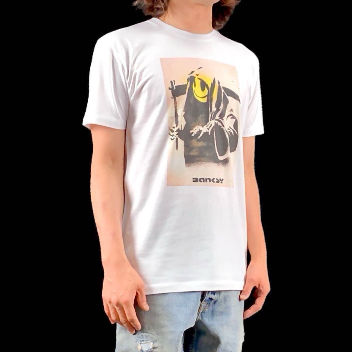 > 新品 BANKSY バンクシー Wrong War スマイリー ニコちゃん 死神 社会風刺 ストリート グラフィティ アート Tシャツ ユニセックス Lサイズ