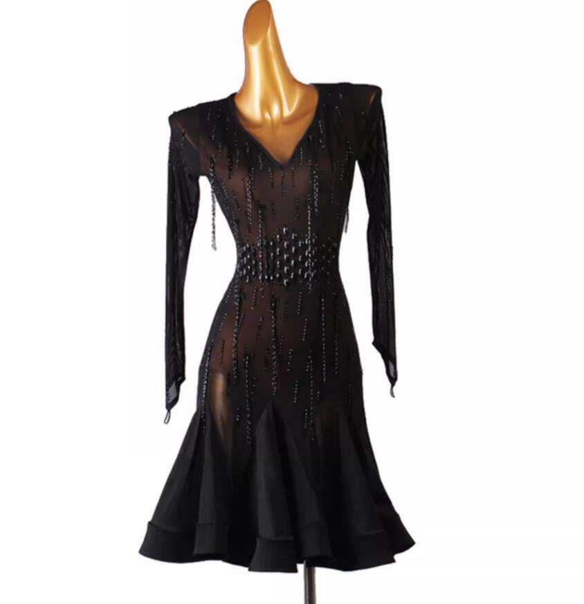 - 人気品サイズオーダー レディース社交ダンス衣装 ハイクオリティダンスドレス ラテンドレス ブラック サイズS~XXL