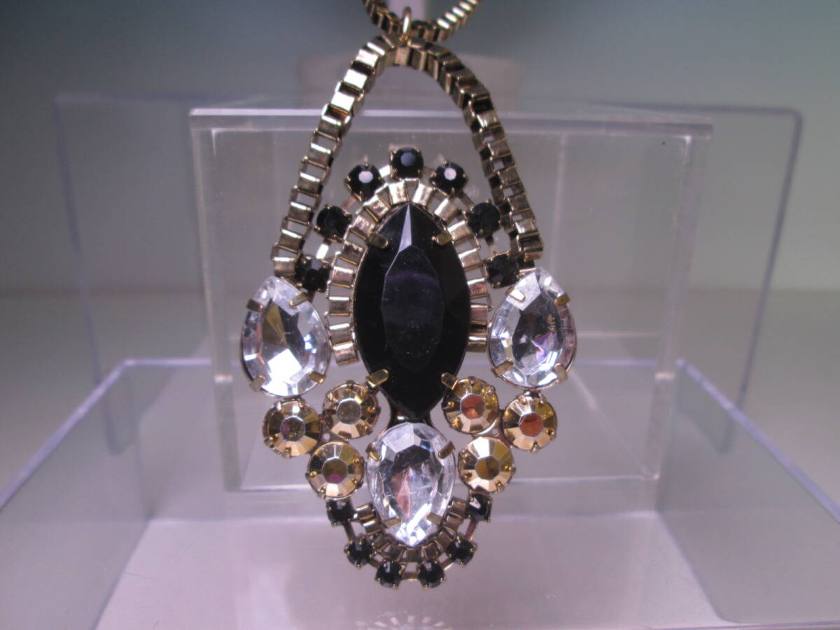 - ☆ブラック/クリアー ラインストーンデザインペンダントロングネックレス