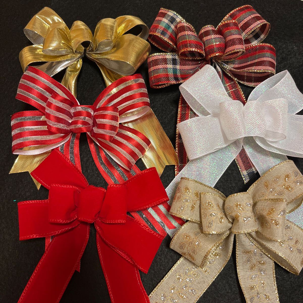 - ハンドメイド クリスマスリース用リボン ワイヤーエッジリボン まとめて 6点