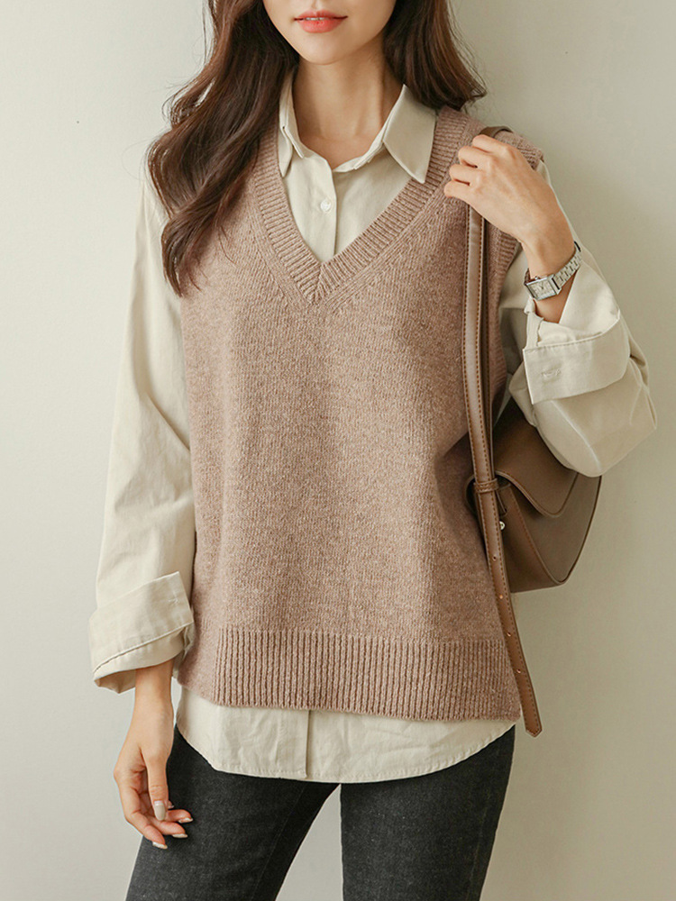 - ニットベスト レディース 40代 秋服 無地 Vネックベスト ニット ニットベスト レディース 40代 春秋冬 ベストセーター ノースリDJ1954