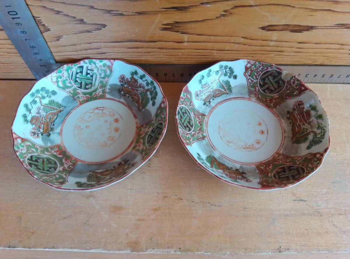 - 24111407 蔵出し なます皿 山水画 三ツ割 和食器 色絵皿 梅 松 コレクション