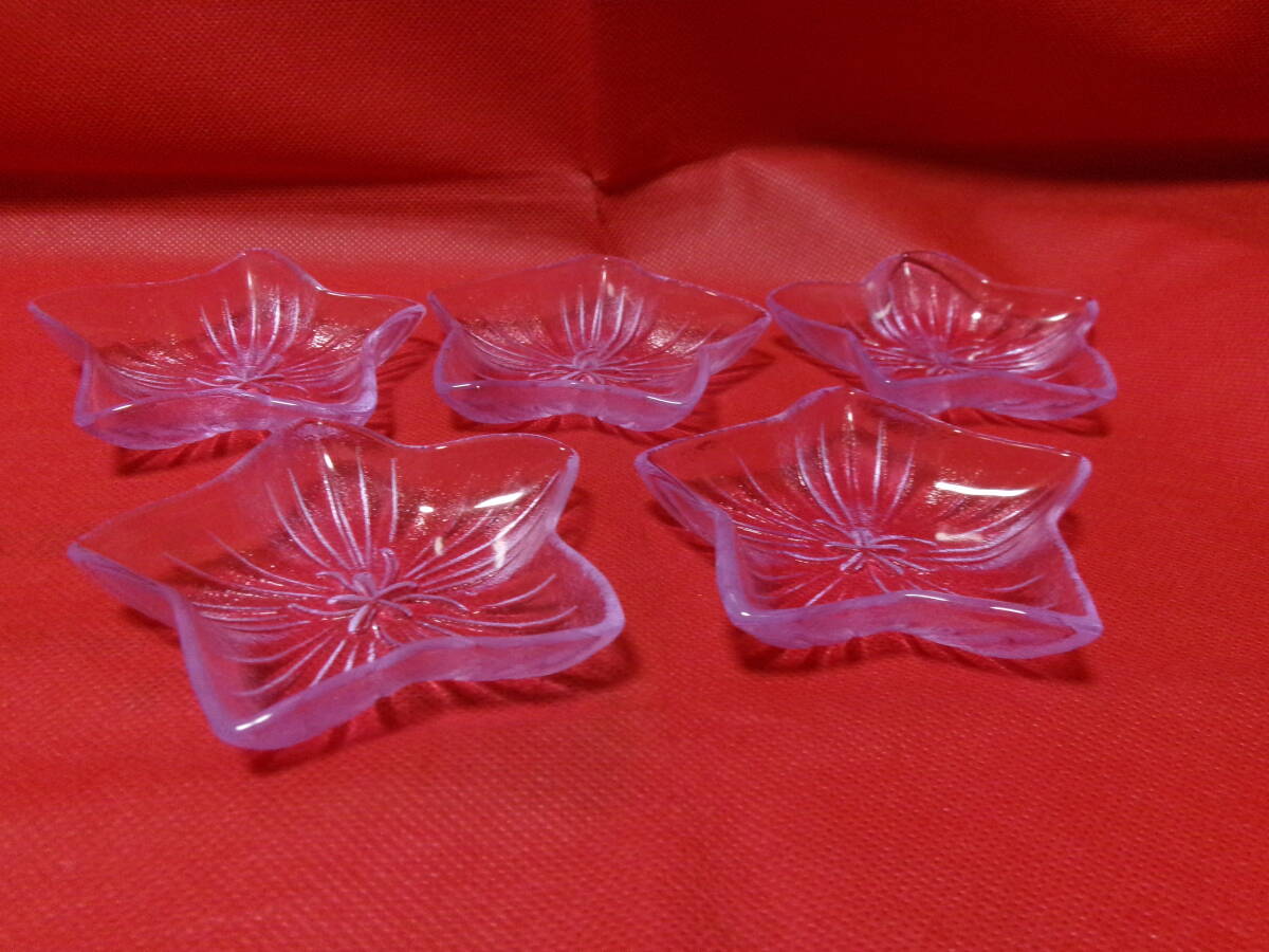 - 未使用品 ガラス製 小皿 豆皿 桔梗形 5個セット