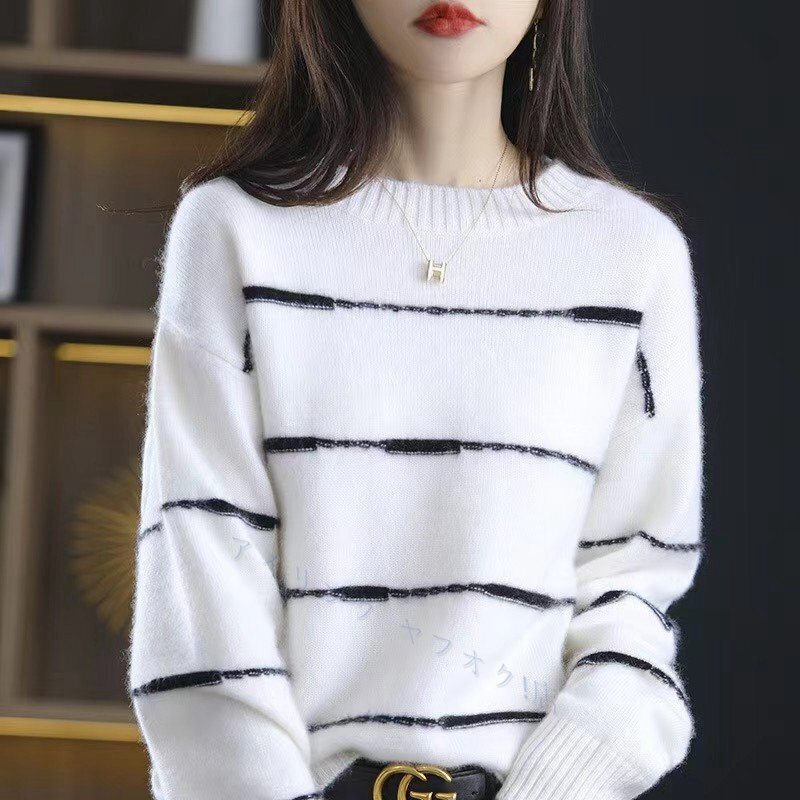 > ☆新品Fサイズ 秋冬 オシャレ ラウンドネック 暖かい ニットセーター ふんわり袖 20304050代 着痩せ ニットトップス