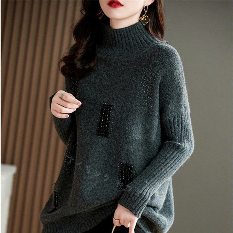 > ☆新品Fサイズ 秋冬 オシャレ ハーフタートルネック暖かい ニットセーター ふんわり袖 20304050代 着痩せ ニットトップス