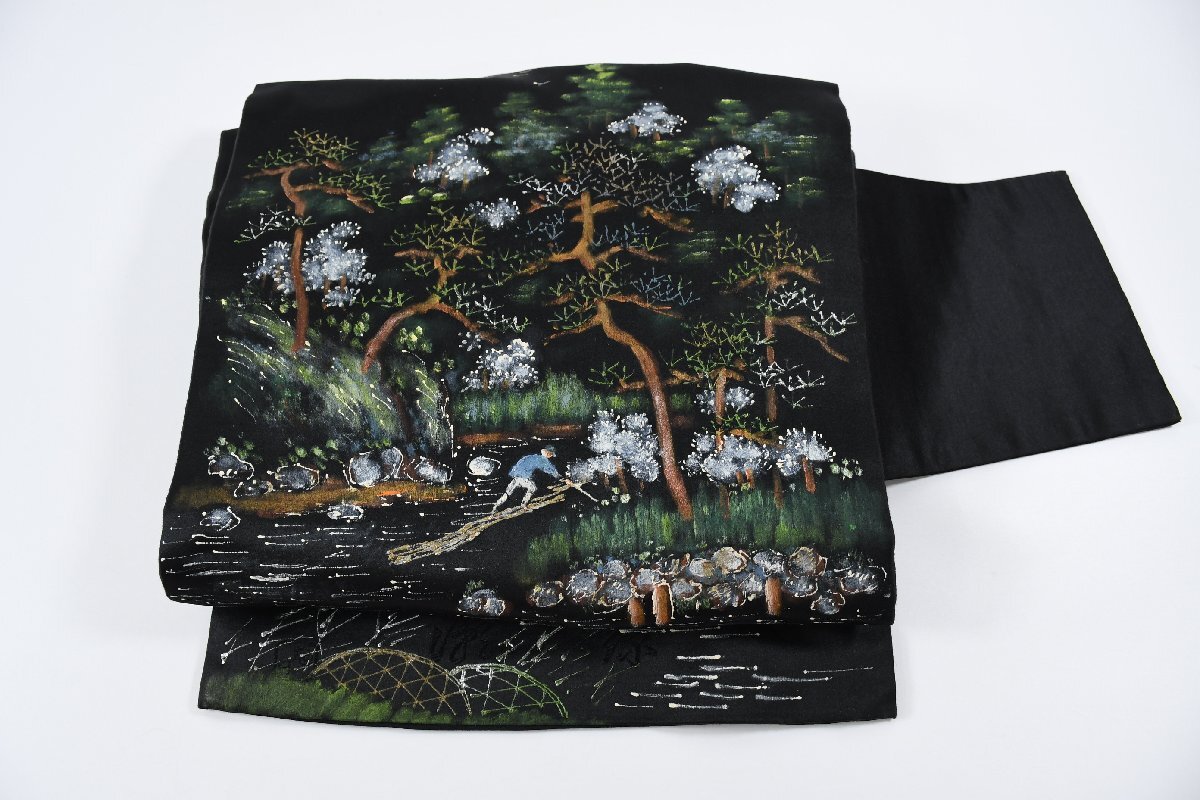 - 名古屋帯 アンティーク 手描き 人物文 風景 帯丈340cm ★着物屋 ne-12876 桜庭呉服店