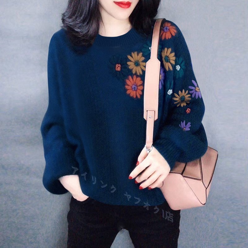 > ☆新品Fサイズ 秋冬 オシャレ 立ち襟 暖かい ニットセーター 純色 ふんわり袖 20304050代 着痩せ ニットトップス