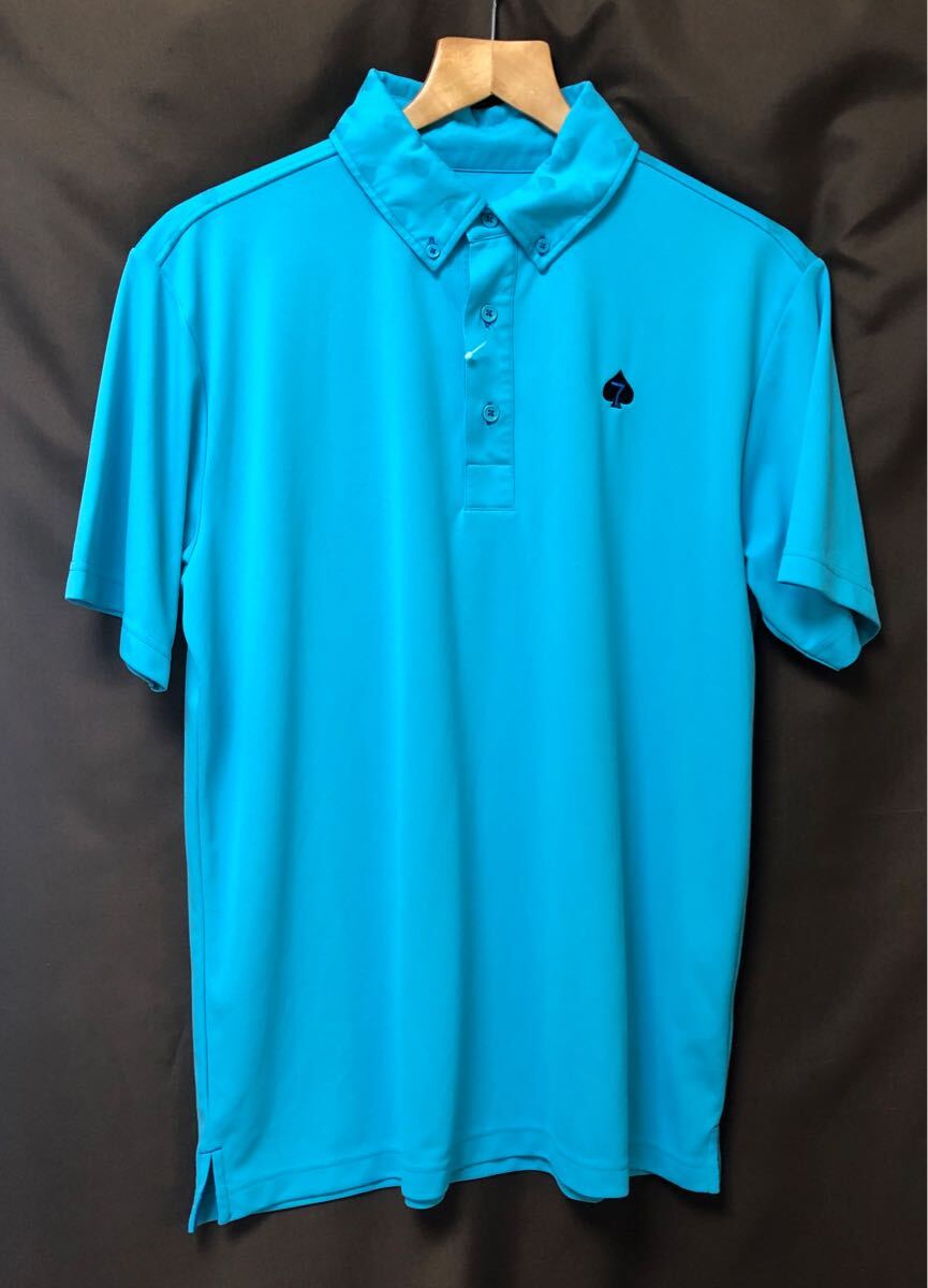 - スペード7 ゴルフウエア GOLF シャツスルッとした肌触りのデザインシャツ! ブルー 半袖ポロシャツ